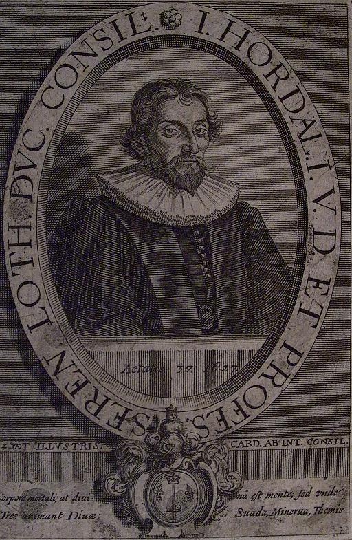 HORDAL (Jean), fils de Jean I HORDAL, lui succéda dans sa chaire de professeur en droit canon et civil. Il a composé un discours panégyrique, prononcé en l’assemblée de la bourgeoisie du Pont-à-Mousson, pour l’élection des magistrats. Pont-à-Mousson. 1627. Mella apum Romanarum. Ponti-Mussi apud Joannem Appier Hanzelet 1628. in-12. C’est un discours adressé au prince Nicolas-François, évêque de Toul, où il prouve que les Romains ont excellé par la sagesse des loix qu’ils ont faites.Jean HORDAL le fils fut employé par Charles IV en différentes négociations. Il mourut à Bruxelles où ce prince l’avoit envoyé. Il laissa un fils qui s’appelloit encore Jean HORDAL, et qui mourut doyen de la faculté de droit du Pont-à-Mousson en 1692 (d’après Dom CALMET, p 509).